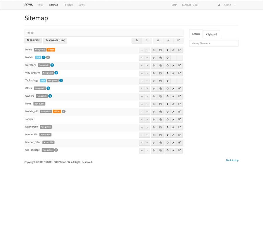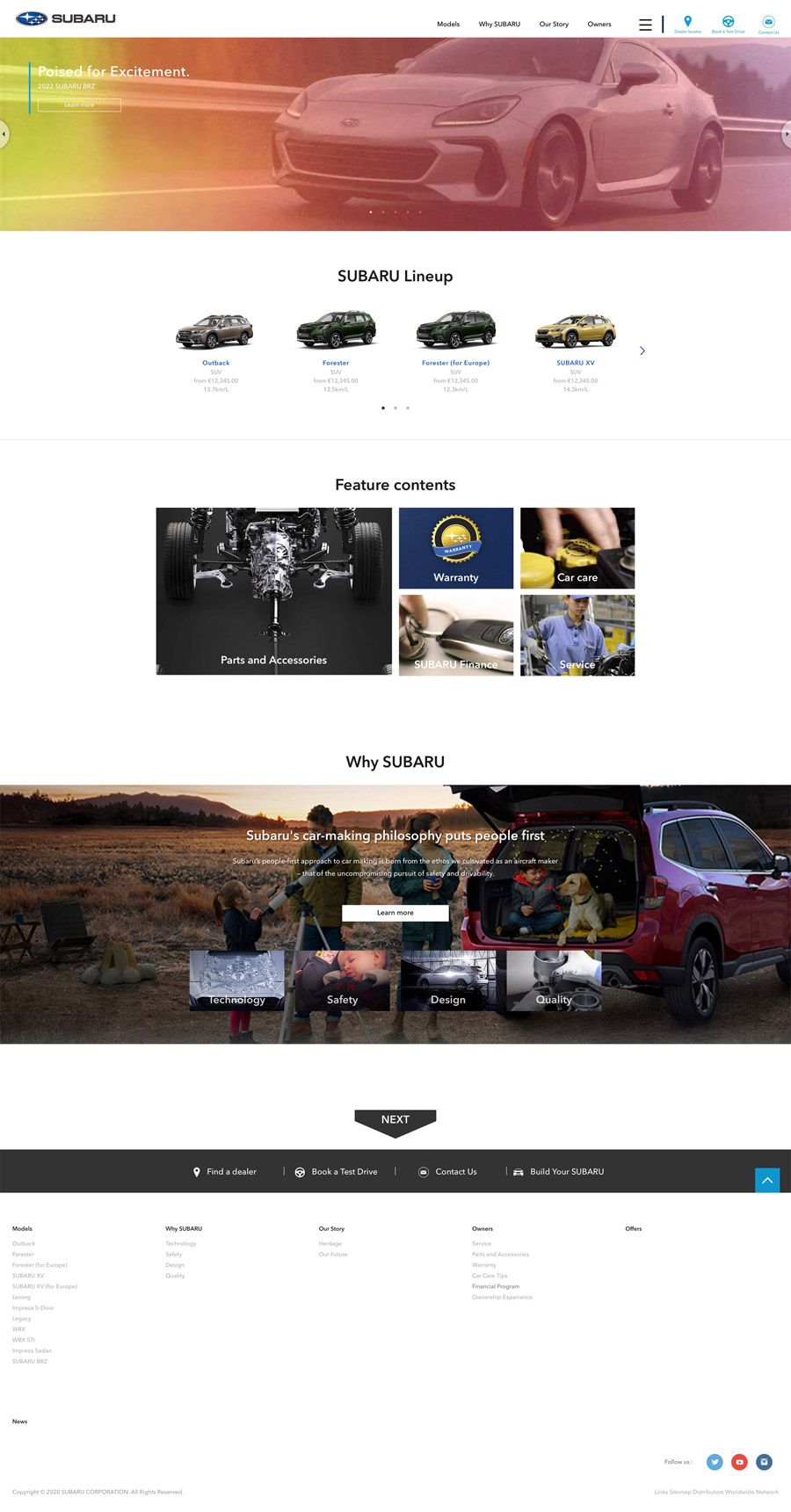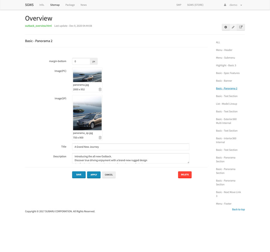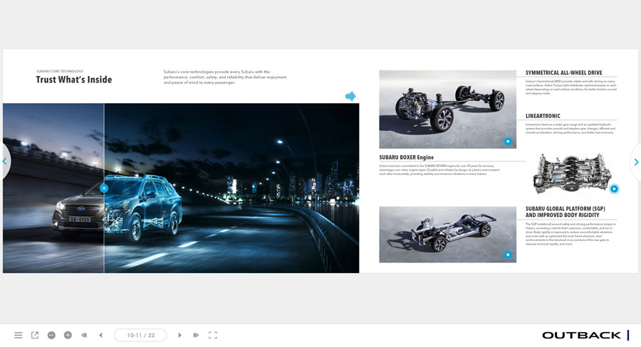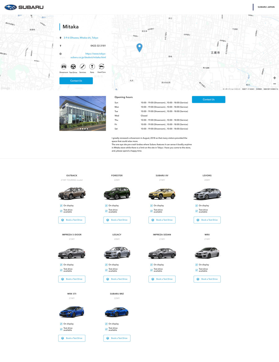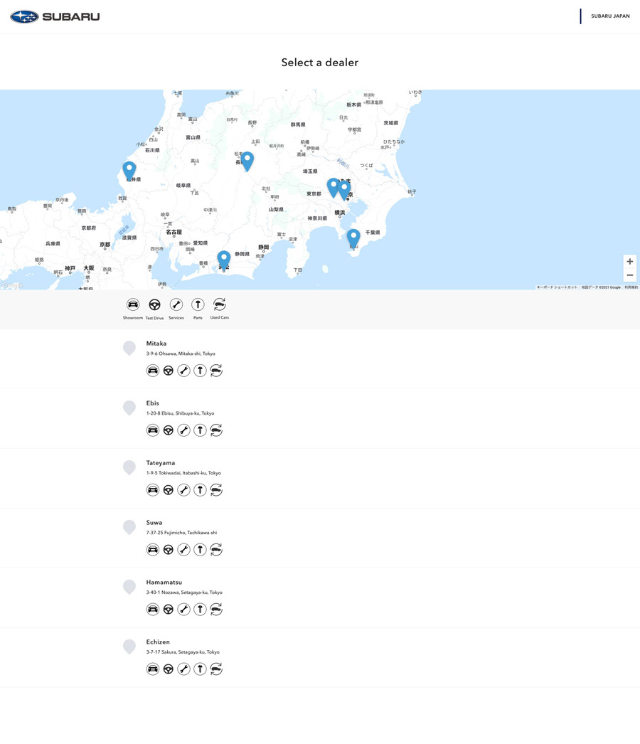 SUBARU様の海外特約店用WEBサイトを作成するCMSの開発・運営を15年以上にわたり行っています。毎年の車両コンテンツやブランドコンテンツの制作から、レスポンシブ対応やCTA機能の実装など、WEBの進化や役割の変化にあわせた競争力のあるサービス運営を続けています。それら機能を扱い易くするUI設計を行い、また特約店とのサポート業務も行っています。現在約30の特約店が利用。