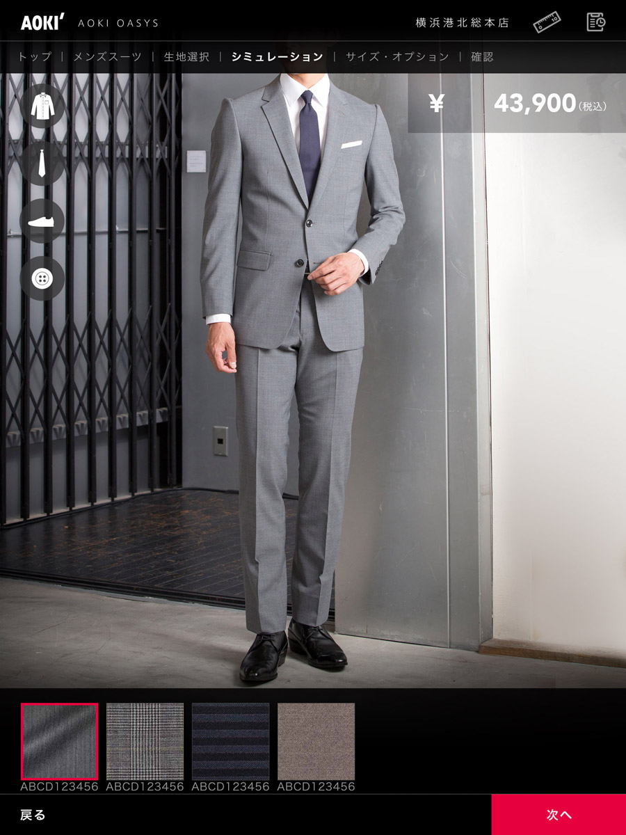 『自分だけの特別な一着』を仕立てる行為を『体験』へと昇華させるべく、モデルさん着用のシミュレーションやシステム全体の世界観、UI設計にこだわりました。店頭でセールスパーソンが利用するiPadアプリと一般ユーザ向けのECサイトを連携させ、自宅でも店頭でも好きな方法でパーソナルオーダースーツを購入できるシステム。導入前に比べ、売り上げ70%アップ、ミスの減少、一回当たりの接客時間の減少など評価されました。